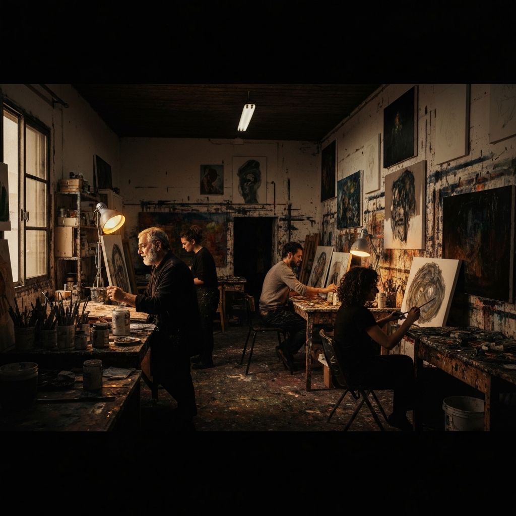 Cada semana: lienzo en blanco, copa en mano y buena compañía. La forma más honesta de crear juntos. Sin ego, solo trazo.